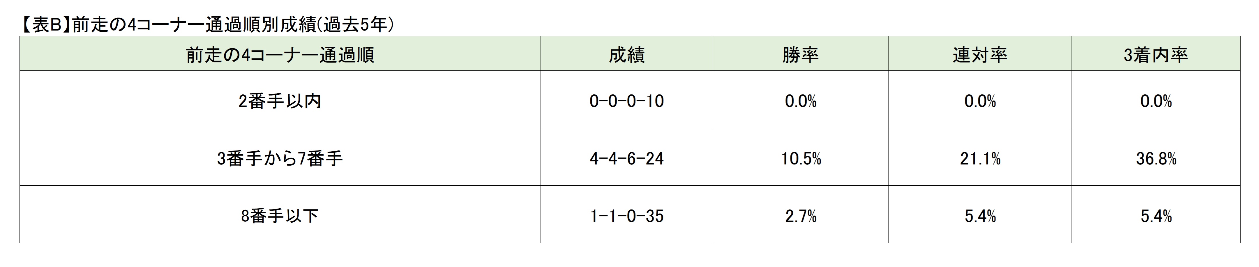 伊吹 まずは脚質をチェックしておきたいところ。2020年以降の3着以内馬16頭中14頭は、前走の4コーナー通過順が3番手から7番手でした。