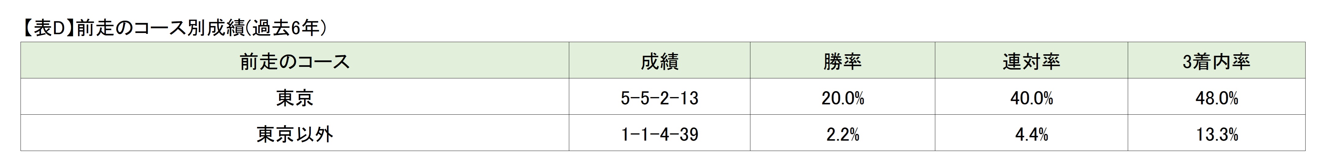 M 一方、前走で東京以外のレースを使っていた馬は3着内率が13.3%どまり。他場のレースをステップに臨む馬は疑ってかかるべきなのでしょうか。